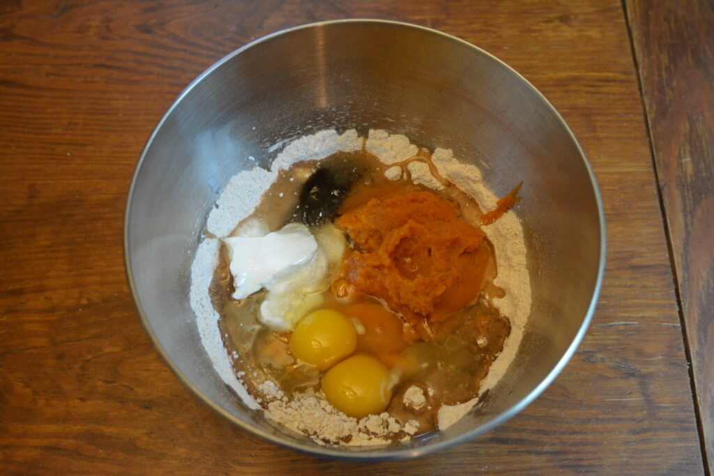 You can see that I’m using a stand mixer, but you really don’t need one for this recipe. For the pumpkin bread you can use a stand mixer or hand mixer, but it’s not necessary, you can just stir these ingredients together with a spoon or spatula. When it comes to the frosting, some sort of mixer is very helpful. A stand/hand mixer is able to whip up the butter and cream cheese together nicely. And the sugar combines with the other ingredients much easier. That being said, a mechanical mixer is still not necessary. I’ve made frosting plenty of times without a mixer, and it always comes out great tasting, it may just be a little lumpy. But don’t feel like you need any fancy equipment to cook or bake! I’m lucky that I was able to get my stand mixer secondhand, so it was free. But even before that, I would use a hand mixer I got from Walmart for $30 (and that was one of the more expensive Walmart hand mixers.) My point is, baking is accessible to anyone. You don’t need a $400 stand mixer or a $200 fancy name-brand dutch oven. I hear a lot of people say they “can’t” bake or cook, but if you can read a recipe and own some measuring cups, I think you’re pretty much golden. Anyway, that’s my soapbox so now I’ll get onto the recipe!