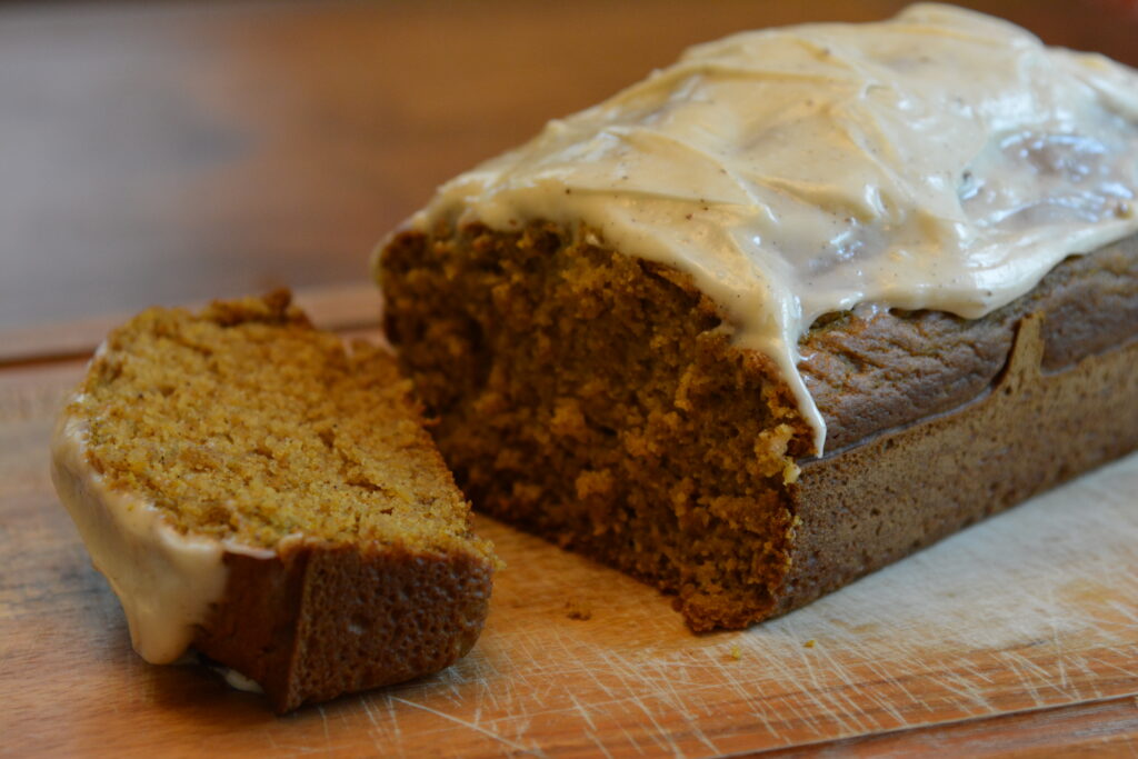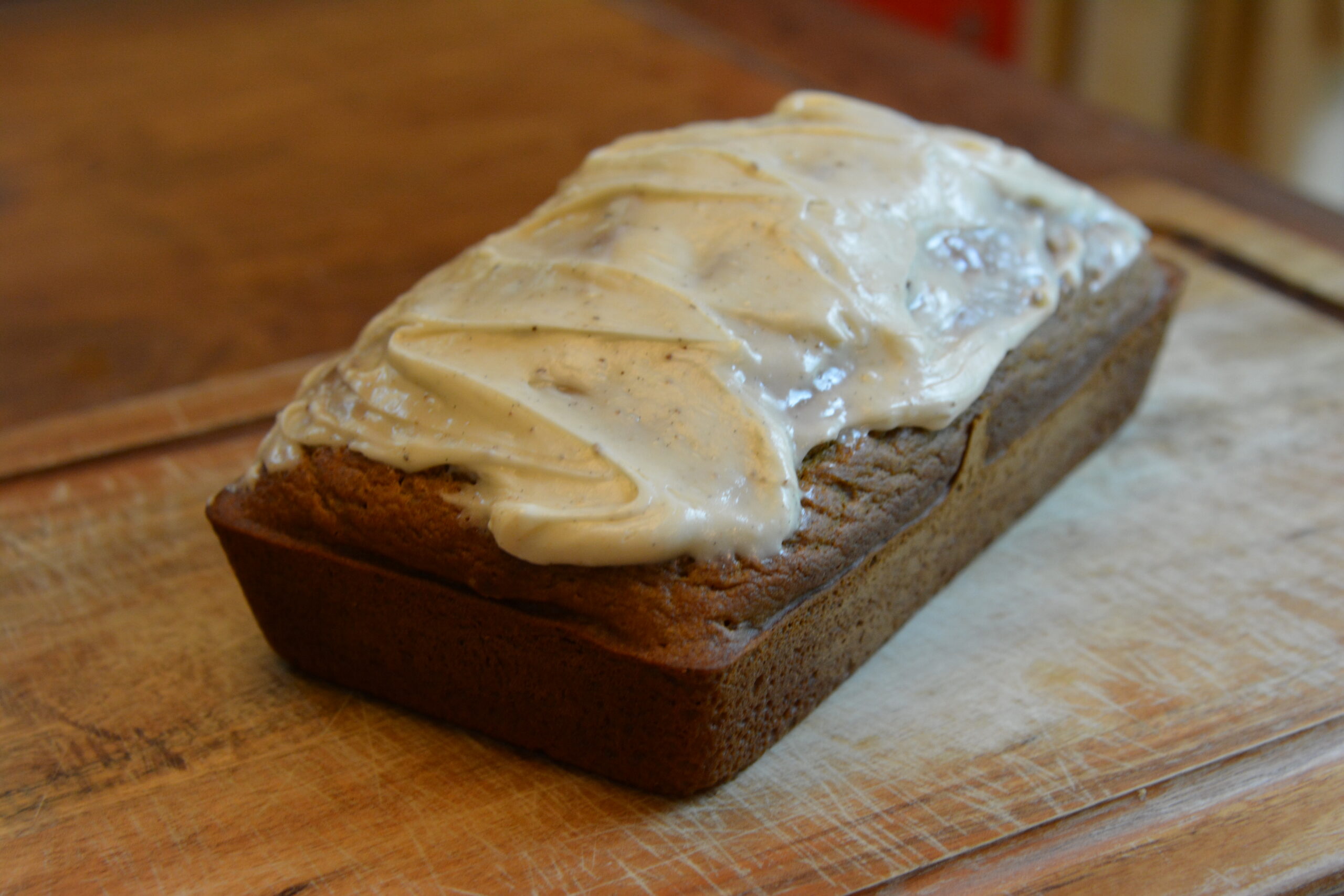 I think this cream cheese frosting is so delicious and adds the perfect amount of sweetness to the recipe. 3/4 cup sugar may not sound like a lot, but I prefer the bread itself to not be too sweet on its own. That way, the cream cheese doesn’t make the sweetness too overpowering. I used vanilla paste in my recipe, which I recommend, because I think it adds a better vanilla flavor than imitation vanilla, although that works perfect too. I’m also partial to vanilla paste because it adds the black specks that shows it’s made from actual vanilla beans. The paste I used is homemade, but Trader Joe’s has a very good vanilla paste too.
