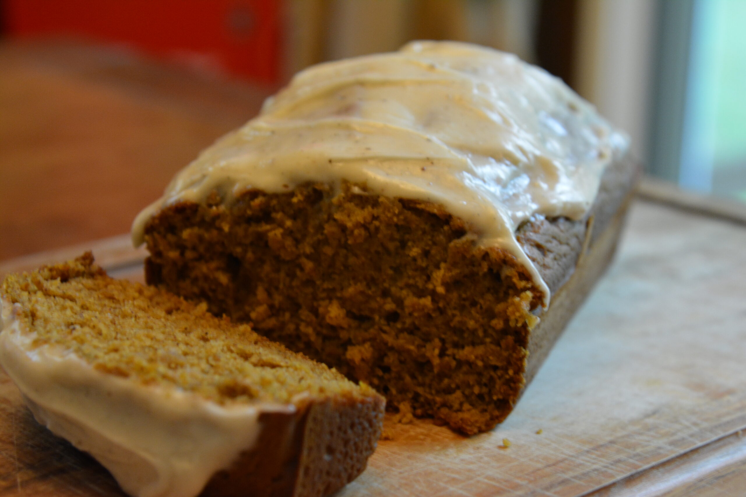 To sound super cliche: it’s fall y’all! When it comes to fall, I am extremely basic. I am so excited to start wearing my winter clothes again (I’m so tired of shorts), I love Halloween decorations and candy, and I LOVE pumpkin flavored desserts. That’s why I’m so excited to share this recipe! I want to be transparent about all my recipes, so this is not one that I came up with from scratch. I first made the “Super Moist Pumpkin Bread” from Broma Bakery. It is a super great recipe and so delicious. I made a few changes, like adding cream cheese frosting, changing the ratios of some of the ingredients, and adding sour cream.