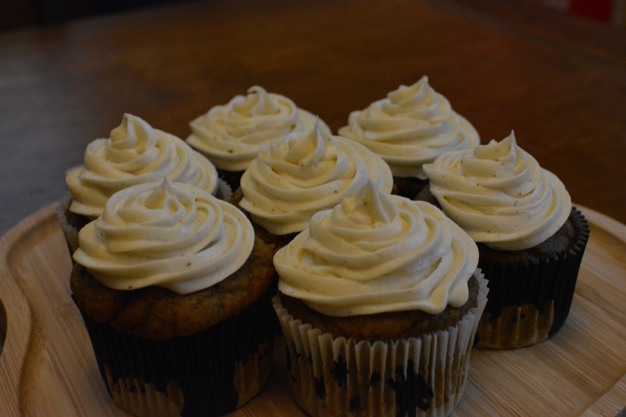 Make sure you let your bread/cupcakes cool for at least an hour. They should be nearly room temp before you add the frosting, or else it all melts right off. Like I said, I was excited about my new piping tips so I used those, but slathering some frosting onto a cupcake with a knife still looks really good. I’m telling you, this recipe is so freaking delicious! Let me know if you try it and how you like it.